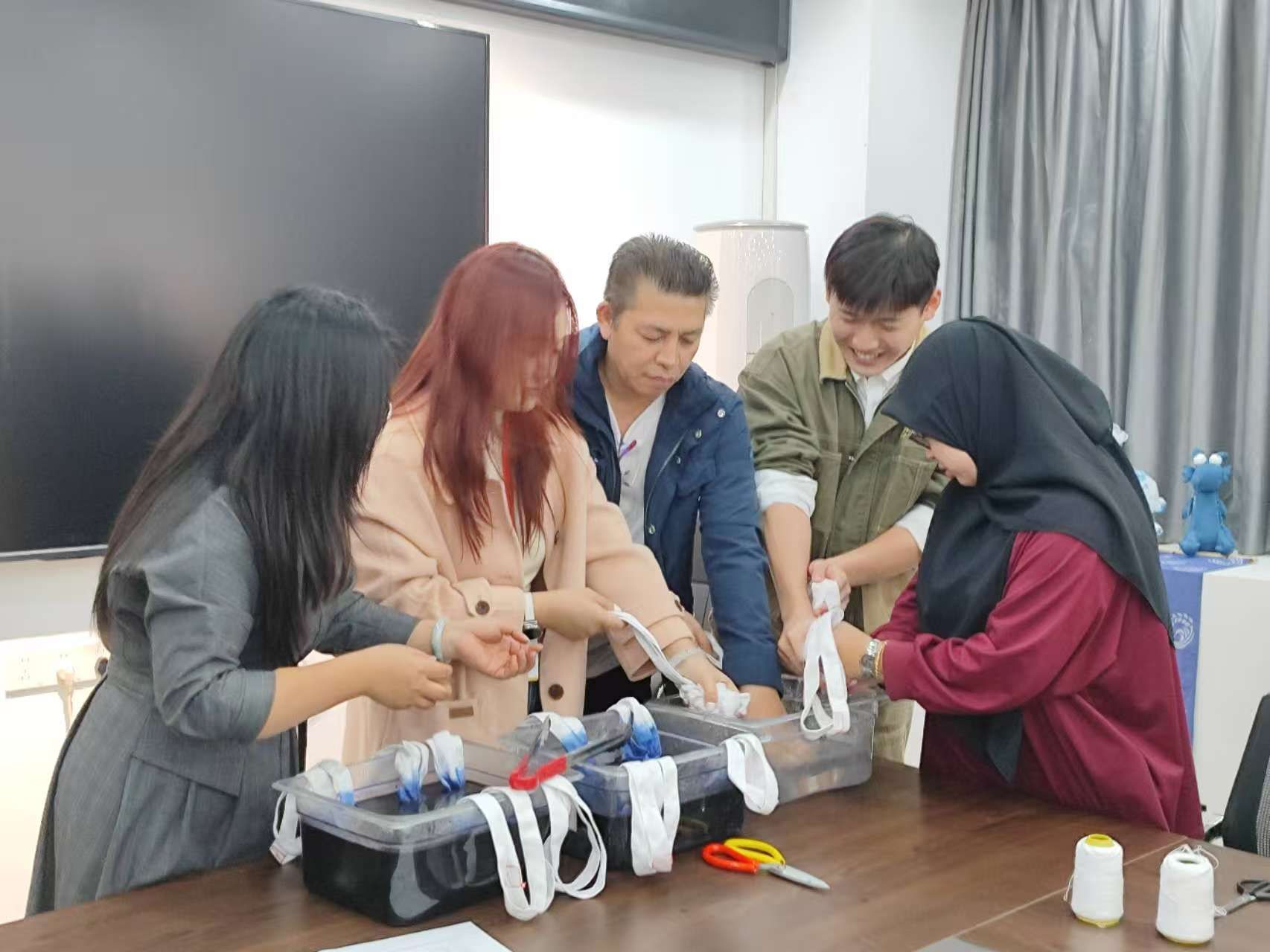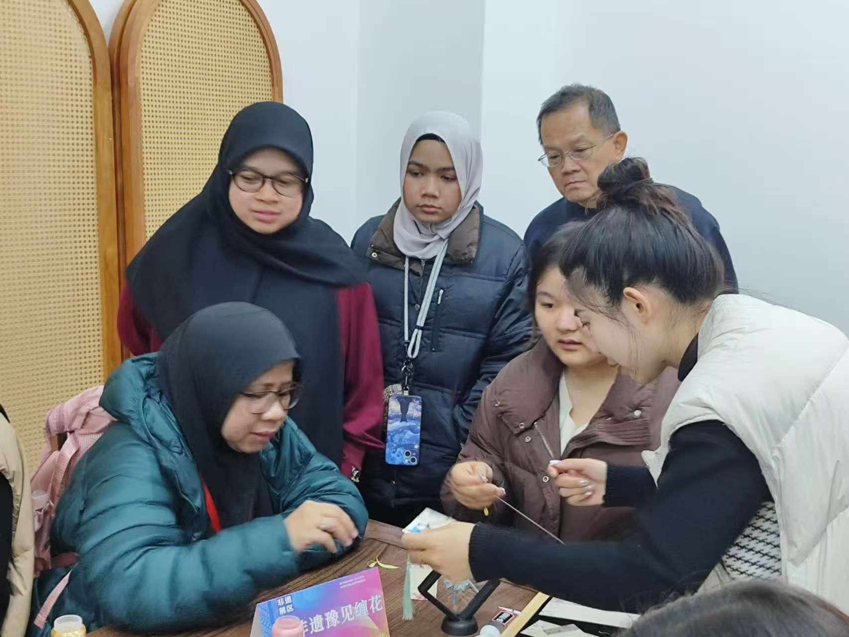 10 月 29 日晚,河南科技学院非遗国际传播研究中心内暖意融融,马来西亚博特拉大学林业与环境学院 23 名师生组成的研学团,在此沉浸式体验缠花、染缬两项中国传统非遗技艺,以手作为媒感受中华传统文化魅力。